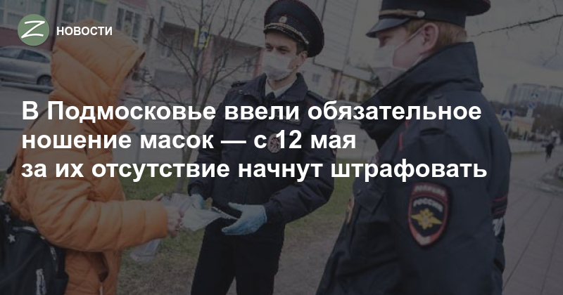 С 12 мая, согласно постановлению губернатора области Андрея Воробьёва, рекомендация превратиться в обязательство — штраф за отсутствие маски в общественном месте составит 4000 рублей, в соответствии с подмосковным КоАП. Контролировать ношение масок будут полиция, ГИБДД и другие правоохранительные и надзорные органы. Масочный режим введён по предписанию главного государственного санитарного врача по Московской области.