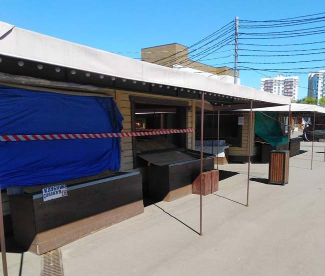 Сейчас работают 18 палаток, это примерно половина от общего числа уличных мест. Количество таких мест меняется в зависимости от сезона. Перед Пасхой огораживается свободное место под продажу искусственных цветов, потом для саженцев и растений, в августе-сентябре — под арбузы и дыни. А ближе к зиме, соответственно, большая часть уличных палаток закрывается.