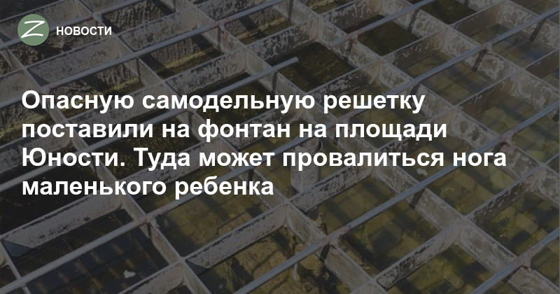 Фонтан на площади Юности бьет из-под земли, он закрыт стандартными решетчатыми панелями. Однако сейчас несколько элементов решетки заменили на самодельную — опасную для маленьких детей.