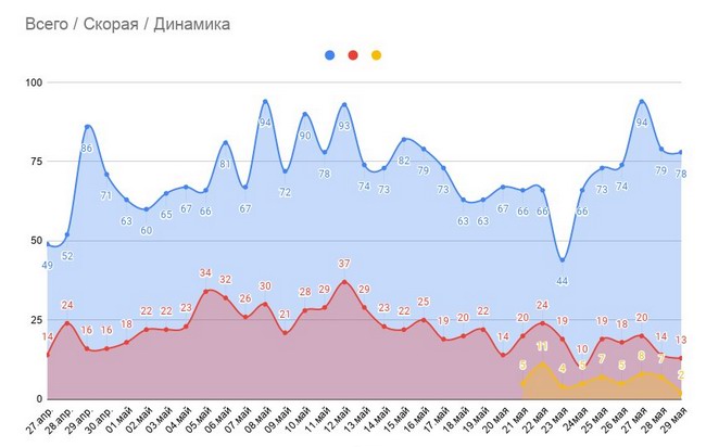 В Тверской области, где связанные с коронавирусом ограничения начали снимать гораздо раньше Московского региона, показатели заболеваемости на порядок ниже — при этом видна тенденция к росту заболеваемости: с начала июня регистрируется по 70-90 новых случаев в день после более спокойного мая с 10-50 случаями за сутки. Всего заболевших на 10 июня 2314, выздоровели 1495 человек, скончались 49 (из них 27 — с начала июня).