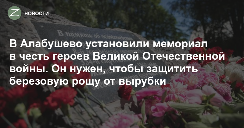 В березовой роще села Алабушево открыли мемориальный камень для увековечивания памяти о героях Великой Отечественной войны. В мае этого года арендатор хотел сдать участок под строительство сауны или хостела. Чтобы не допустить уничтожения рощи, на этом месте установили памятник и сделали эту зону мемориальной.