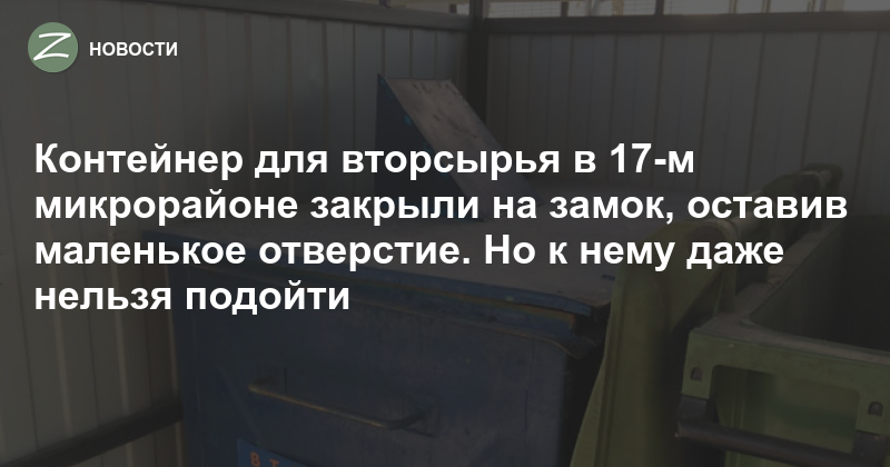 История со сваливанием мусора из разных баков в один мусоровоз у новостроек 17-го микрорайона получила неожиданное продолжение — контейнер просто заперли на ключ и оставили небольшое отверстие. И поставили его так, что не подойти.