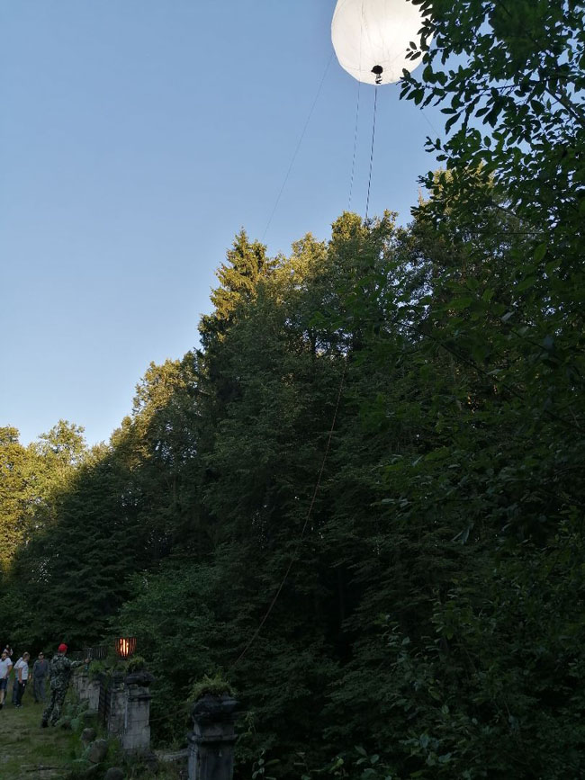 В минувшее воскресенье в парке возле усадьбы снимали эпизод будущего фильма. На мосту поставили газовые факелы, в съемках задействовали карету и специальный шар для создания «лунного» света.
