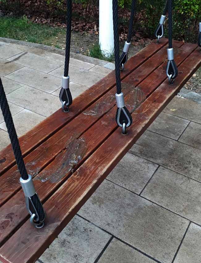 Неизвестный испортил качели возле остановки «Дом быта» в 3-м микрорайоне, измазав сиденья солидолом. В таком виде обнаружили их местные жители утром во вторник.