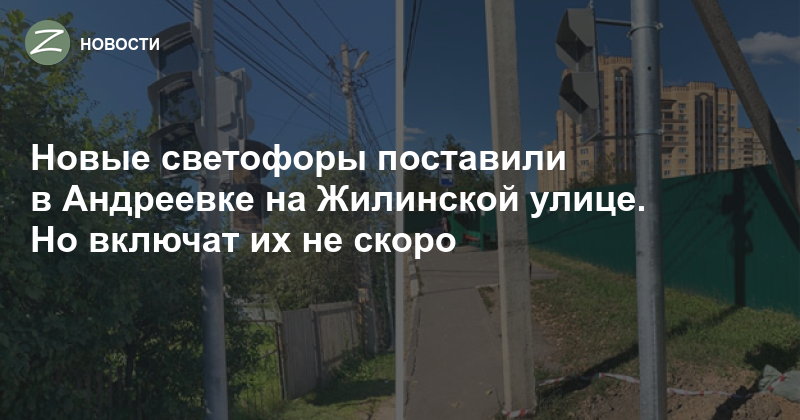 Светофоры установили на Жилинской улице, чтобы упорядочить потоки транспорта. Местные жители просили об этом давно. Но включат светофоры не скоро.