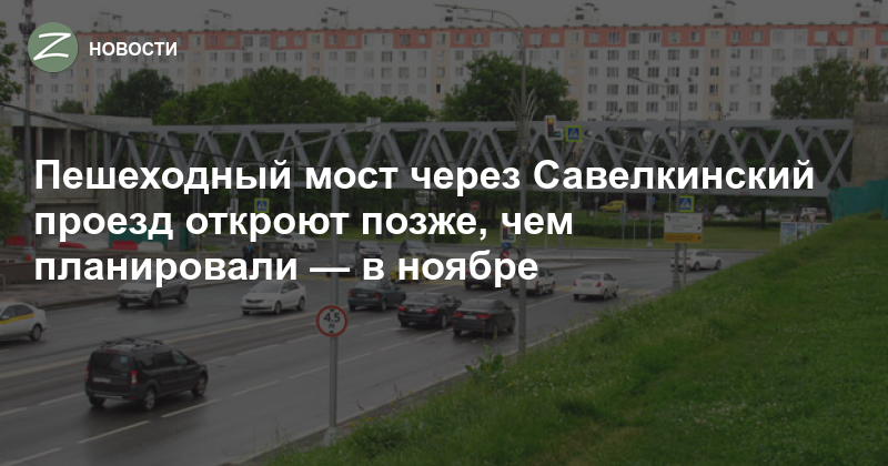 Ко Дню города в начале сентября, как планировалось, надземный переход через Савелкинский проезд достроить не успеют. Новый срок завершения стройки и открытия моста — ноябрь. При этом обе существующие «зебры» через проезд могут сохранить.