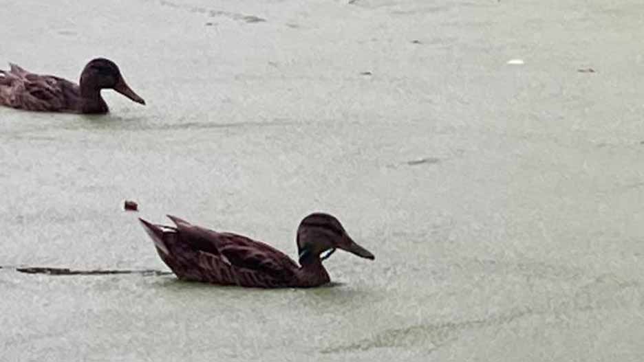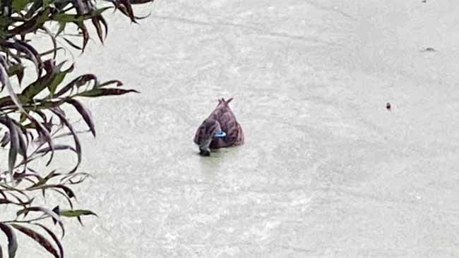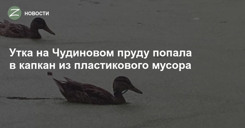 Птице грозит гибель из-за людской беспечности и мусорного отношения к природе. Пластиковое кольцо от бутылочной крышки застряло в клюве утки. Оно, как хомут, проходит между пластинами клюва и лежит у птицы на шее под затылком.