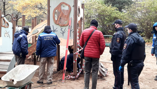 Однако 20 октября возле корпусов начали устанавливать вовсе не новую площадку — это видно невооруженным глазом. В управе, куда жители позвонили, этого и не отрицали и сказали, что комплекс ставят временно вместо демонтированного. Как выяснилось, этот городок стоял у 200-х корпусов «на коммуникациях». Активные жители затребовали какую-то разрешительную документацию по поводу переноса площадки, им пока ничего не предоставили. Информационного щита о проводимых работах — а это обязательное требование при благоустройстве, — у дома нет.