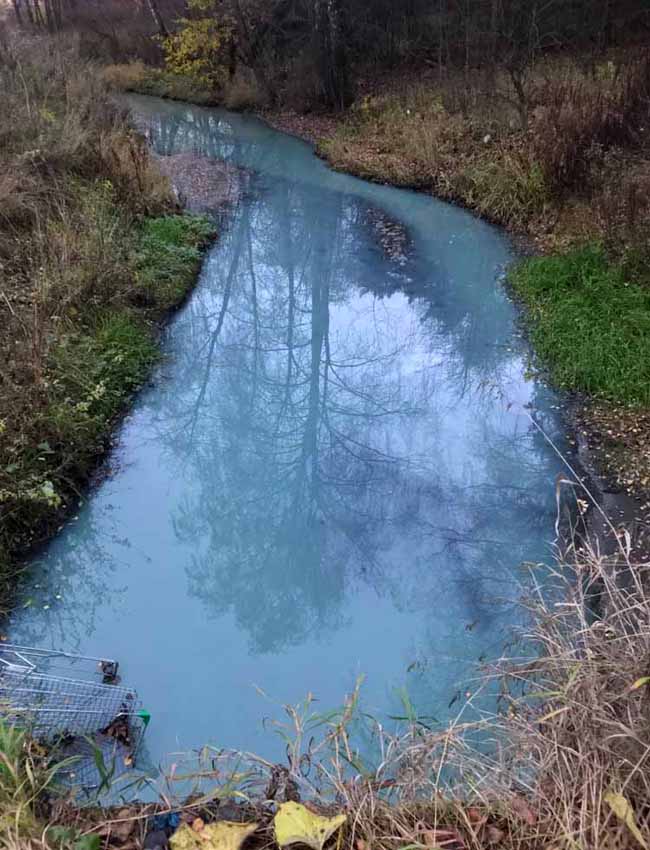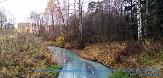 В среду, 4 ноября, вода в реке Ржавке помутнела и приобрела, по описанию нашего читателя, «ужасный и отвратительный синюшный окрас». Фото сделаны там, где река вытекает из подземного коллектора под Московским проспектом и течёт в Никольский пруд возле МЖК, а также по дороге в «Зеленопарк». «Зеленоград.ру» выясняет причину.