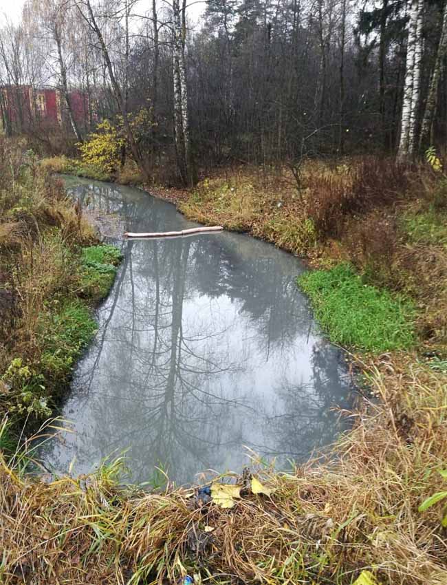 Кто-то слил отходы в водоприёмный колодец на проезжей части Ленинградского шоссе — они попали в реку Ржавку и окрасили её в «ужасный и отвратительный синюшный» цвет, как описал вчера наш читатель. Загрязнение видели на пути из подземного коллектора под Московским проспектом в сторону Никольского пруда возле МЖК и по дороге в «Зеленопарк». А сегодня, 5 ноября, специалисты «Мосводостока» устраняли последствия загрязнения.