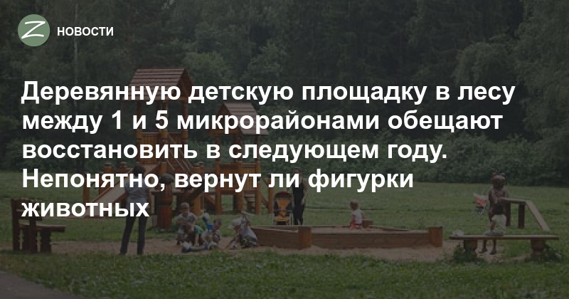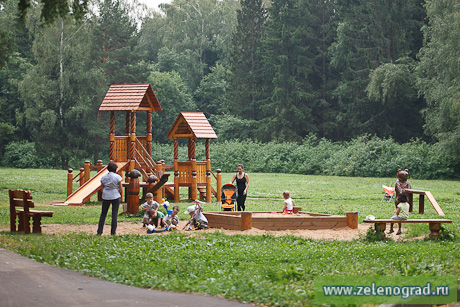 Деревянная детская площадки на поляне в лесу между 1 и 5 микрорайонами обветшала и её демонтировали — убрали горки, домик и резные фигурки животных. Новую площадку поставят в 2021 году (если будут деньги). Пока непонятно, будет ли новая площадка деревянной, как это принято на зеленоградских природных территориях, или типовой, как ставят во дворах.