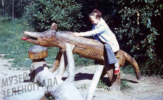 Деревянную площадку поставили в 2012 году. Её элементы не покупали, а сделали в местной мастерской, своими силами, «как в старые добрые времена», рассказывал перед установкой руководитель зеленоградской дирекции природных территорий Владимир Рунов. Помимо игровых элементов, на площадке были деревянные фигурки животных. Такие фигурки в Зеленограде начали делать в 70-е годы, для этого специально наняли бригаду резчиков по дереву. Их фигурки заказывали и для московских улиц.