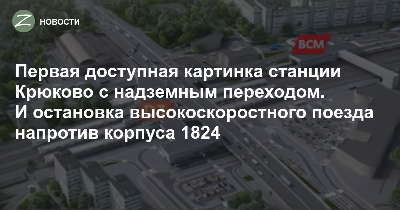 Представлено проектное изображение будущей станции Крюково (Зеленоград) — после того, как её перестроят. Пешеходный мост построят возле подземного перехода №1 — узкого, где проходят пассажиры электричек. А напротив корпуса 1824 построят станцию высокоскоростной магистрали «Москва — Петербург».