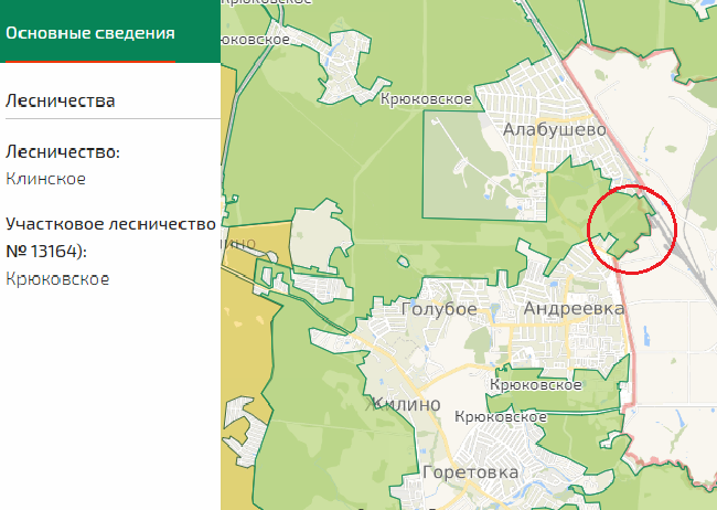 Лес относится к кадастровому кварталу 50:09:0110302. По данным интерактивной карты «Леса России» и Геопортала Подмосковья этот участок является землями лесного фонда. По закону их запрещается использовать в свободном обороте: не допускается заключение договоров купли-продажи, они не могут являться предметом залога. Такие участки могут быть только в аренде, концессии или бесплатном пользовании у физических и юридических лиц.
