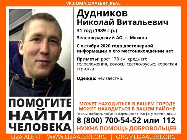 Любую информацию, которая поможет найти Николая Дудникова, просят сообщать по телефону горячей линии поисково-спасательного отряда «Лиза алерт»: 8-800-700-54-52 или 112.