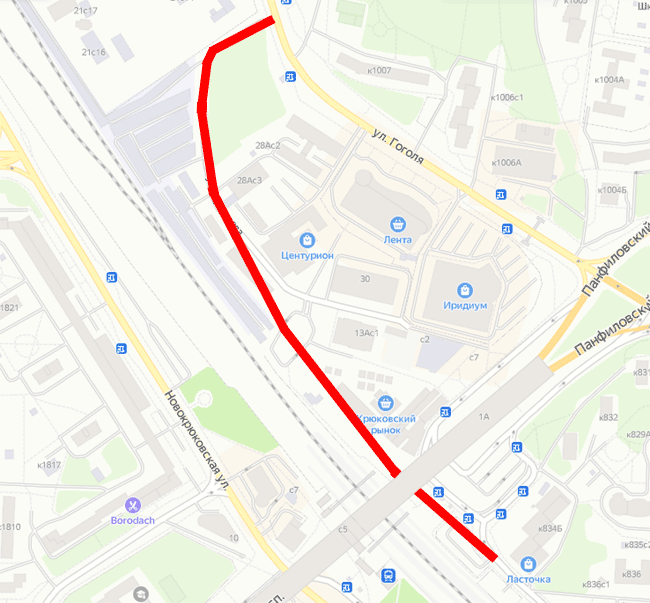 Эти работы запланированы после реконструкции станции Крюково. На месте будущей новой дороги сейчас пешеходная зоны возле станции, парковки, рынок, разные постройки.