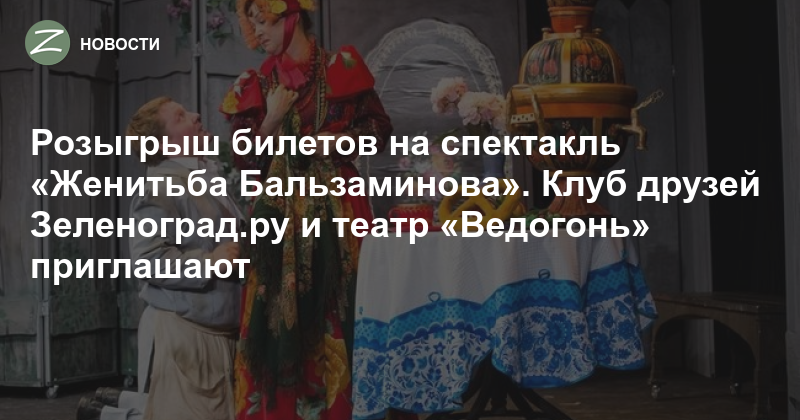 Театр «Ведогонь» и клуб друзей Зеленоград.ру приглашают на спектакль «Женитьба Бальзаминова» по пьесе Александра Островского. Показ спектакля состоится 25 марта в 19:00 на театральной сцене КЦ «Зеленоград». Билеты можно приобрести на сайте театра. Стоимость билетов: 700-900 рублей.