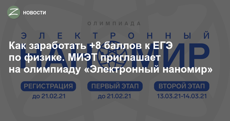 МИЭТ предлагает школьникам узнать больше о современном мире электроники и приглашает к участию в Межрегиональной олимпиаде школьников «Электронный наномир». Принять участие в Олимпиаде может любой учащийся 10-го или 11-го класса, увлекающийся физикой. Для этого достаточно зарегистрироваться на сайте мероприятия nanomir.miet.ru и пройти процедуру подтверждения аккаунта.