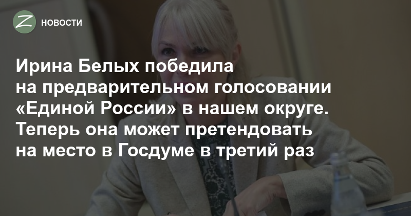 Вечером 30 мая стали известны результаты предварительного голосования «Единой России». По 207 (Ховринскому) избирательному округу, куда относится и Зеленоград, победила действующий депутат Госдумы Ирина Белых. Она набрала 28,5 тысяч голосов — это 38 процентов от участников праймериз.