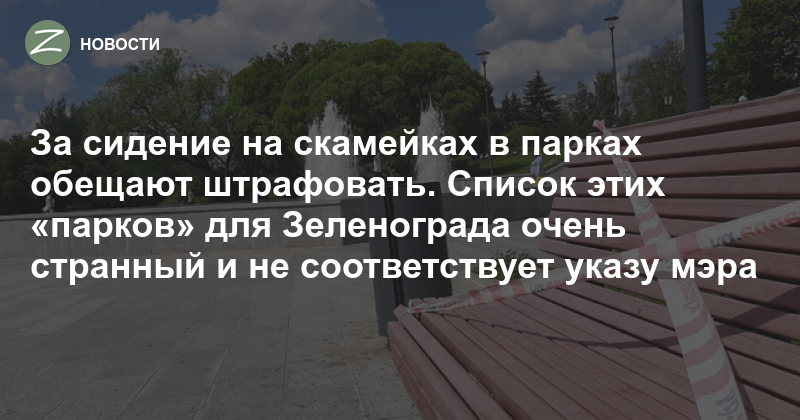 Жителей, сидящих на скамейках в парках с 13 по 20 июня, обещают штрафовать на четыре тысячи рублей. При этом в указ мэра не попали те зеленоградские парки, где больше всего людей. Но скамейки в них все равно оказались закрыты.