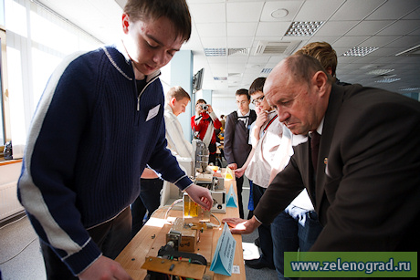 - 1 место — Сергей Кораблин из лицея 1557, проект «Регистратор пиковых значений давления и стенд для его демонстрации». Сергей участвовал в Ярмарке сразу с тремя проектами и получил несколько наград, среди которых был сертификат на право получения высшего образования в МИЭТе за счет «Микрона», грамота от «Ангстрема» и награда Московской торгово-промышленной палаты.