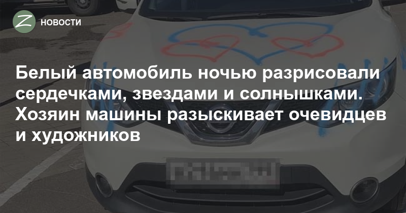 Кто-то разрисовал белый «Ниссан Кашкай» в ночь с 6 на 7 июля. Автомобиль был припаркован возле корпуса 1450.