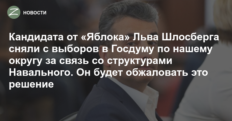 Московский городской суд удовлетворил иск о снятии кандидата от партии «Яблока» Льва Шлосберга с выборов в Госдуму по по 207 Ховринскому округу, куда входит и Зеленоград. В суд за проверкой на причастность Шлосберга «к экстремистским организациям и поддержке Навального» обратился конкурент Льва Шлосберга из партии «Зеленые».
