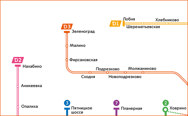 Для МЦД-3 пересадки на метро, МЦК и другие линии МЦД будут (или уже есть) на станциях Ховрино, Лихоборы, Петровско-Разумовская, Останкино (метро «Фонвизинская»), Рижская, Митьково (метро «Сокольники»), Электрозаводская, Авиамоторная, Андроновка, Чухлинка, Вешняки (метро «Рязанский проспект»), Выхино, Косино (метро «Лермонтовский проспект»). На бывшую Ржевскую Курско-Рижского направления с Рижской Ленинградского направления можно перейти и сейчас — только идти далеко и неудобно.
