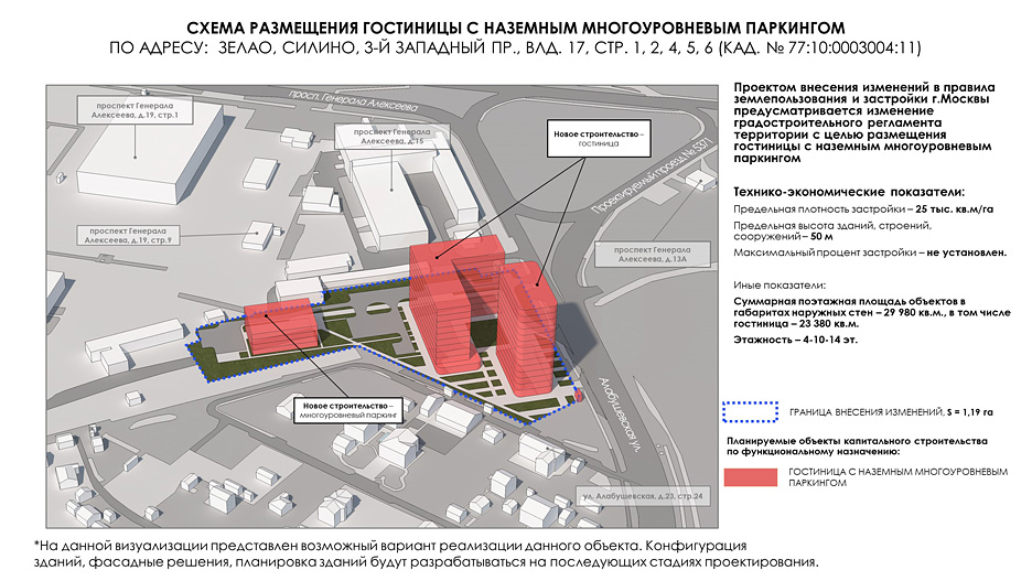 Строительство гостиницы на участке рядом с площадкой «Алабушево» особой экономической зоны «Технополис Москва» — а именно, на углу Алабушевской улицы и проспекта Генерала Алексеева — начнётся в феврале 2022 года. Одновременно стало известно, что гостиницу собираются запустить в 2025 году под брендом Hilton Garden Inn.