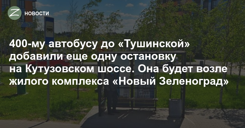 Новая остановка «Кутузовское шоссе, 1» вводится с 11 декабря для автобуса 400T (17-й микрорайон Зеленограда — метро «Тушинская»). Здесь уже останавливается автобус 400К, но еще один маршрут нужен жителям подмосковного ЖК «Новый Зеленоград». Остановка вводится в обоих направлениях.