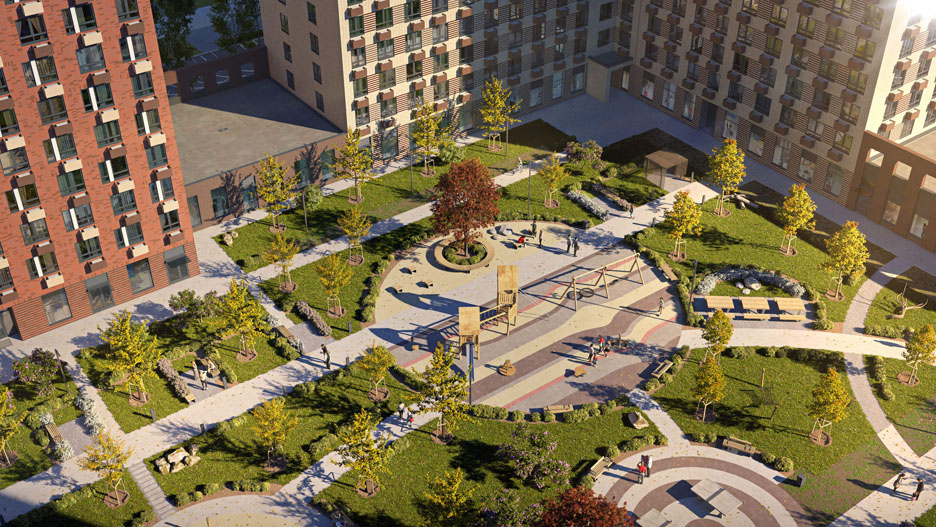 Всего в четырех корпусах 964 квартиры. В подвалах сделают индивидуальные кладовые. Мусоропроводов в этих домах не будет. Подземных паркингов в домах в проекте нет. Уличные парковки должны сделать на первой линии, возле Георгиевского проспекта, и в проездах между домами. Во дворах-колодцах, образуемых соединенными нежилыми зданиями корпусами, парковок не предусмотрено — это концепция «дворы без машин». ПИК объясняет это решение «мировым опытом» и сотрудничеством с английскими дизайнерами. Во дворах будут парки — газоны, деревья, лужайки, площадки для спорта и отдыха.