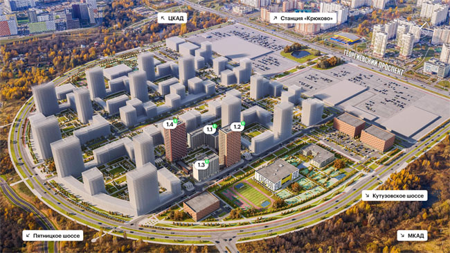 Застройщиком числится не ПИК, а АО «Специализированный застройщик «Зеленоградский», связанный с ПИКом через учредителей (по данным системы «Контур.Фокус»). Сейчас получено разрешение на застройку первых жилых домов. Инвестор планировал построить в ЦИЭ около тридцати домов, но сейчас точного их количества в проекте нет. Срок разрешения на строительство первых четырех корпусов — до 1 июня 2024 года.