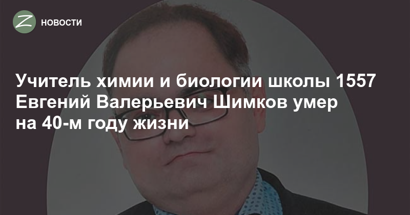 После тяжёлой болезни скончался учитель химии и биологии школы 1557 Евгений Валерьевич Шимков, горячо любимый учениками. Его не стало 14 января, а меньше чем через месяц, 12 февраля, ему исполнилось бы 40 лет.