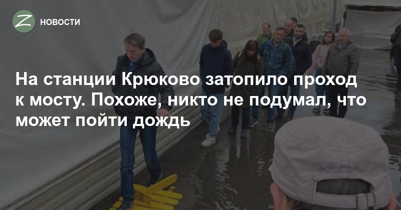 Сейчас на станции Крюково идет ремонт и строительство нового вокзала, но о том, что может пойти дождь, похоже, никто не подумал. К 7:55 лужу уже «разметали». Редакция «Зеленоград.ру» отправили жалобу на это подтопление на портал «Наш город».