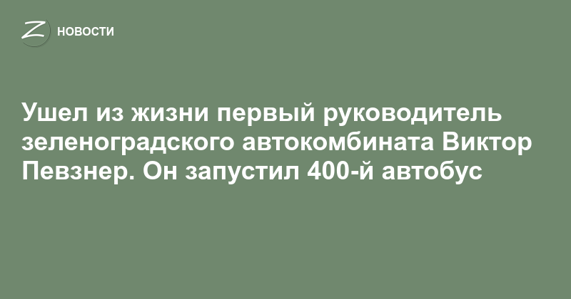 Ушел из жизни первый руководитель зеленоградского автокомбината Виктор Яковлевич Певзнер. Почти сорок лет, с 1963 по 2001 год, он руководил зеленоградским автокомбинатом (ныне — зеленоградским филиалом Мосгортранса). Недавно ему исполнилось 95 лет.