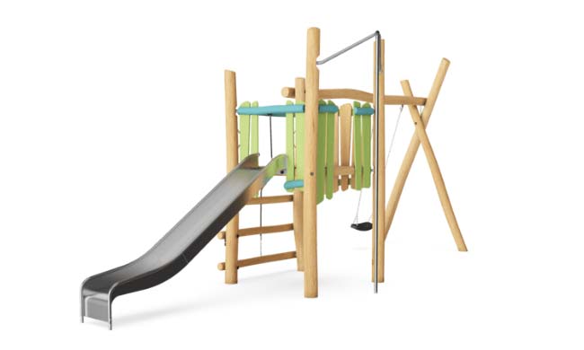 Детская площадка будет из дерева. Судя по проектным решениям, это будет площадка производителя Kompan, который специализируется на уличных игровых площадках из дерева. Будет игровой комплекс «Замок», башня с горкой и качелями, полоса препятствий, деревянная карусель, отдельностоящие качели, домик-хижина.