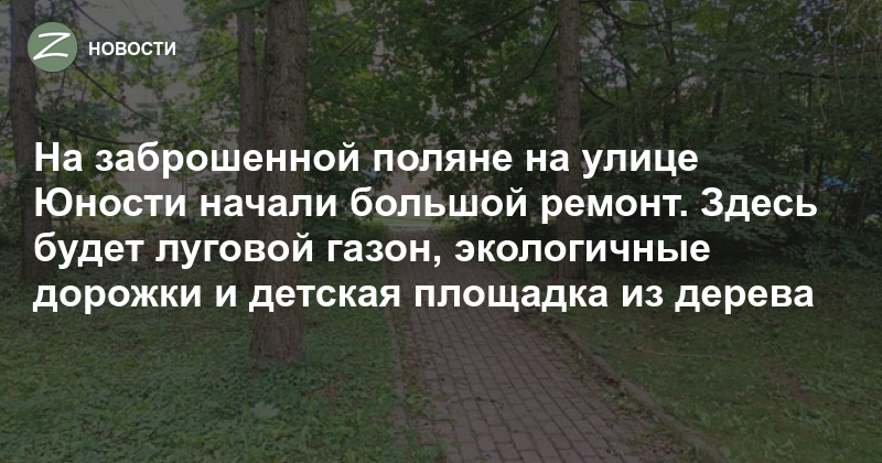 От детской площадки на улице Юности, рядом с музыкальной школой, осталось одно название и большая поляна. Теперь на ней начали большое благоустройство. По проекту здесь будет детская площадка из дерева, газоны, цветники, новые дорожки. Правда, непонятно, когда — работы начали с большим опозданием.