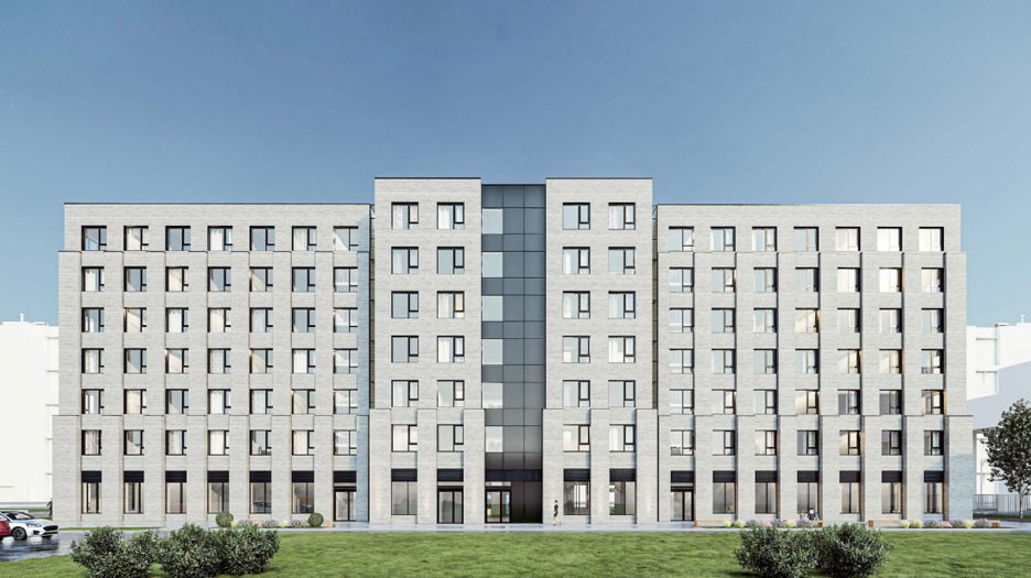 Проект разработан компанией Artel architects. Для отделки стен решено использовать клинкерную или бетонную плитку светлого оттенка, имитирующую кирпичную кладку — этот материал придаст зданию фактурность и подчеркнет вертикальный ритм основных элементов. Стилистически фасады здания будут решены в модернистском стиле. На подземном уровне расположится паркинг на 32 машины, еще 19 машиномест устроят на улице возле здания.