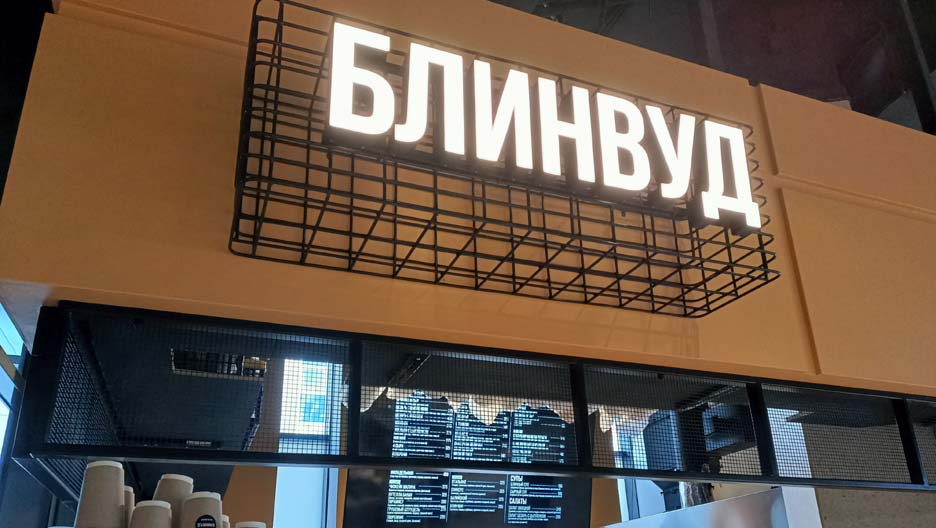 В меню «Блинвуд» на 1-м этаже гастрономического центра «Станция» около 30 разновидностей и комбинаций начинок. От скромного «Цыпленок и сыр» (цыпленок су-вид, чеддер, черри) за 195 рублей или детского с малиновым вареньем за 145 до грандиозного «Екатерина великая» (тар-тар из лосося, красная икра, пищевое золото, кремчиз, зеленый лук) за 795.