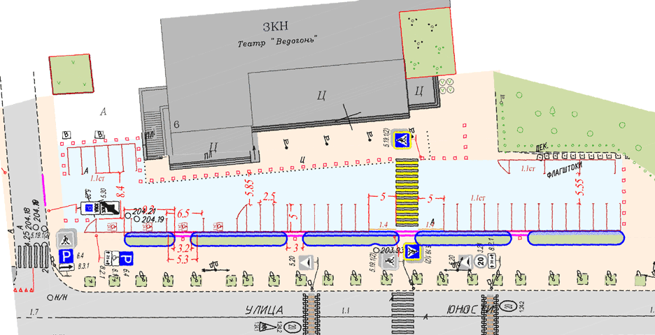 Судя по документам, 34 парковочных места (из них 4 для инвалидов) устроят в центре площади. А пешеходная зона будет возле фасада театра и вдоль проезжей части (улицы Юности). Тротуар от парковки отделят гранитными столбиками высотой 60 сантиметров и газонами. Возле новых газонов сделают технический тротуар высотой 15 см. На парковке разметят «зебру» — пешеходный переход для прохода к театру от пешеходного перехода через улицу Юности. На площади поменяют асфальт и бордюры, поставят дорожные знаки. Стоимость работ оценивается в 3,6 миллиона рублей.