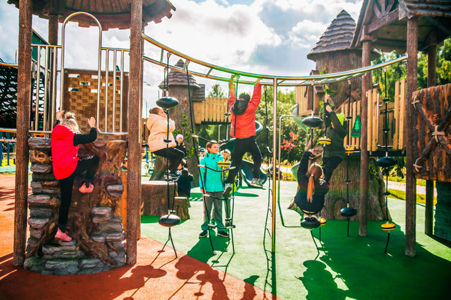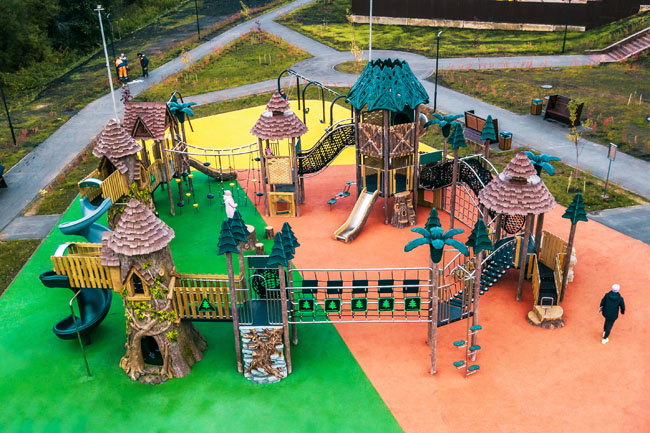 Для детей постарше поставили игровой комплекс в виде сказочного леса с лесенками, горками и канатами