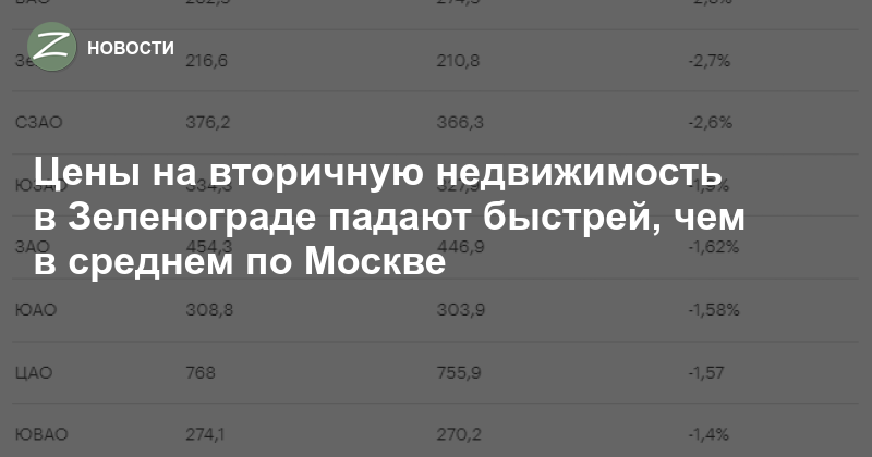 Цены на вторичную недвижимость в Зеленограде падают быстрей, чем в среднем по Москве. За прошедший месяц падение составило 2,8% — с 217 тысяч рублей за квадратный метр в сентябре до 211 тысяч в октябре.