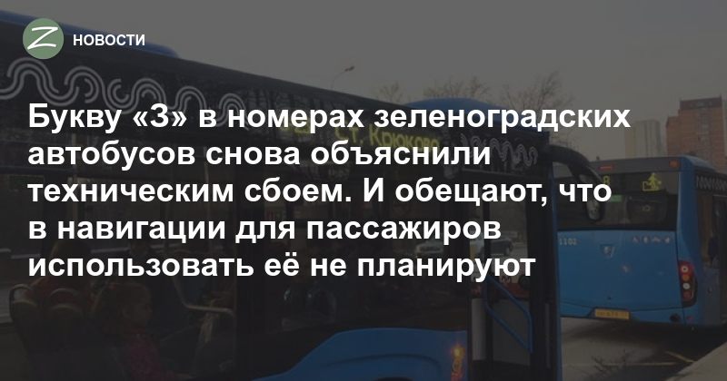 У программистов «Мосгортранса» опять что-то пошло не так — перед привычными номерами на автобусах появилась буква «З». Это опять был сбой. Менять номера зеленоградских маршрутов не планируют.