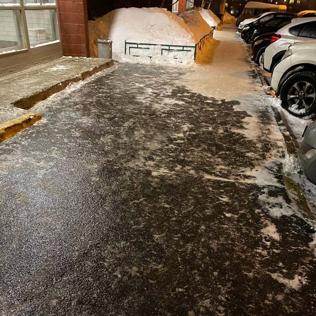«Везде, где лежит плитка — голый лёд». Как коммунальщики справились с ледяным дождем в прошлый раз
