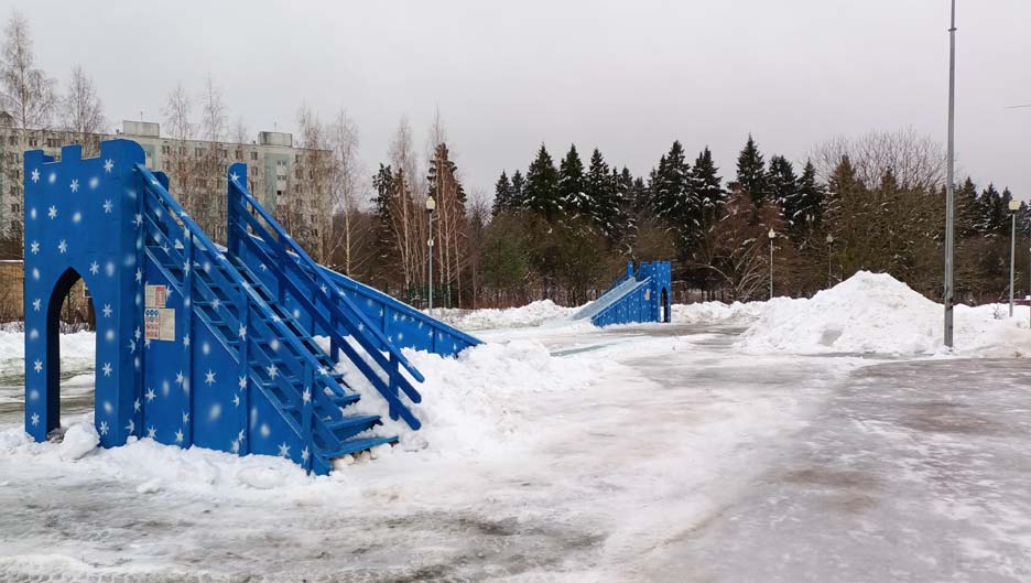 Две горки поставили возле катка на Сосновой аллее, напротив 6-го микрорайона. Сами горки деревянные, выкат — ледяной. Правда, сейчас всё подтаяло и выкатываешься в лужу. Но когда подморозит, снова можно будет кататься.