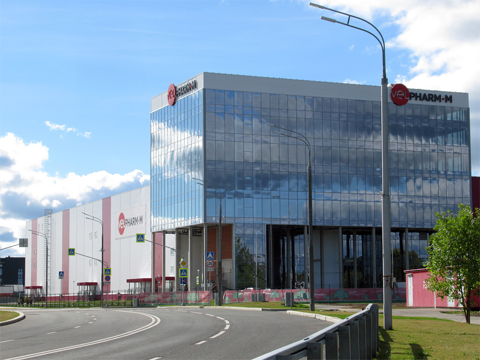 Шестиэтажный комплекс «Велфарм-М» площадью 33,7 тысячи кв.метров расположен в северо-западной части площадки «Алабушево», рядом с другими фармацевтическими предприятиями: «Биокад», построенным в 2020 году, и строящимся заводом «Р-Опра».