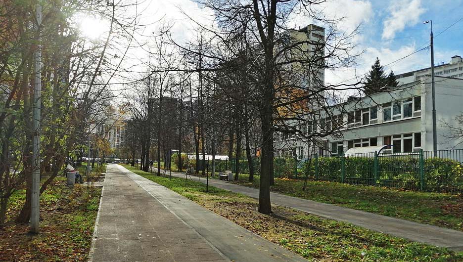 На широком пешеходном перекрёстке «Аллеи вязов» c другими дорожками между корпусами 905 и 918 также поставят несколько скамеек. Этот перекрёсток, дорожка мимо ДЮЦ «Восток» и дорожки за корпусом 905 получат плиточное покрытие — поэтому на время благоустройства их перекроют для пешеходов.