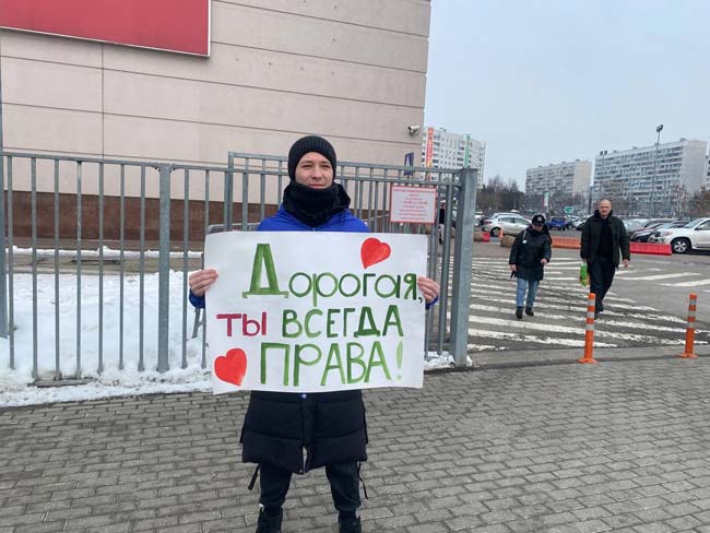 Пикеты с плакатами «Сегодня я сам помою посуду», «Я вынес мусор», «Дорогая, ты всегда права» и «Каждому мужчине — работу, каждой женщине — мужчину» стояли 8 марта в людных местах Зеленограда. Оказалось, что это акция «Молодой гвардии Единой России».