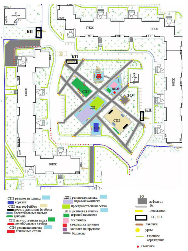 - заменят покрытие площадок: искусственная трава, «мастерфайбер», «резиновая плитка» (общая площадь 1118 кв.м.)