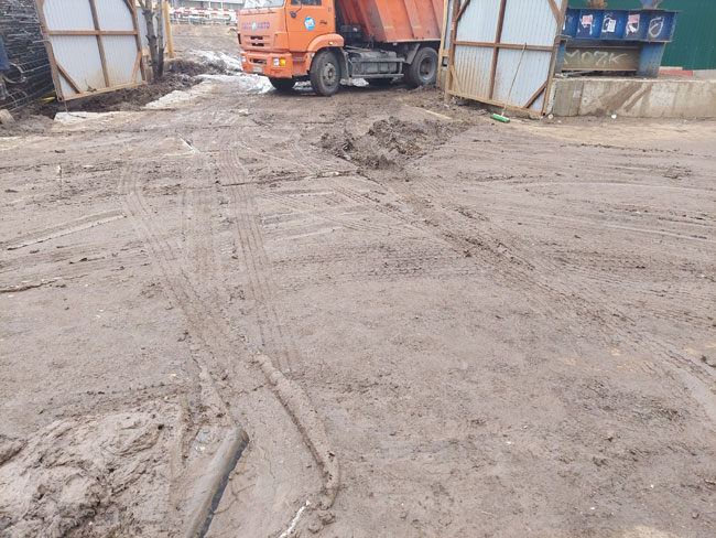 «Ни одного пункта мойки колес в этом месте, — добавляет Николай. — Самосвалы беспрепятственно выезжают на проезжую часть с грязными колесами».